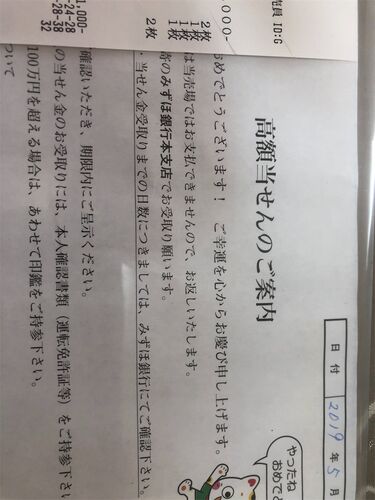 初めて高額当選した! 億とか期待したけど… そう上手く行くものではないなー